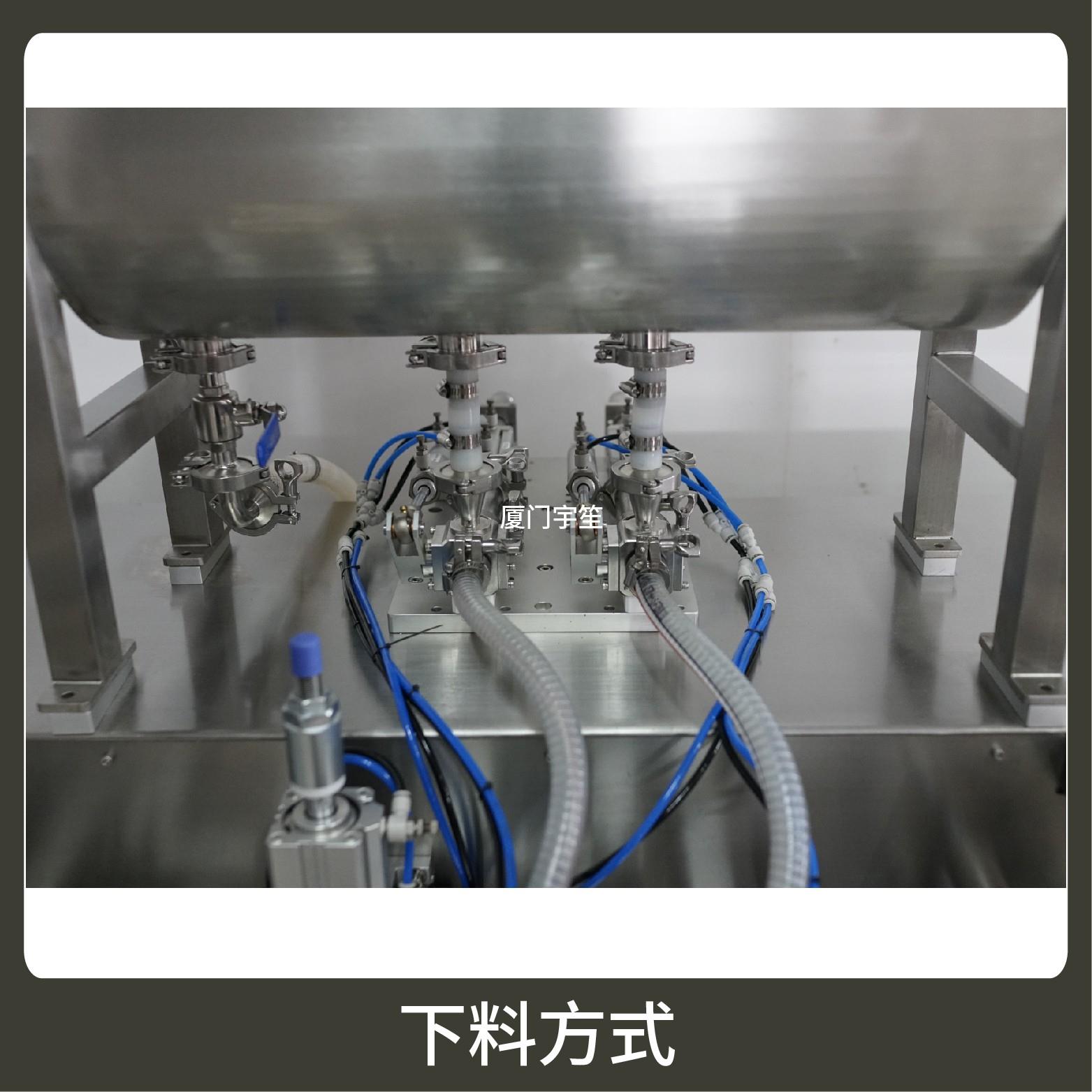2、成品雙出,包裝流程全自動(dòng),無需人工操作??筛鶕?jù)充填物料的性質(zhì)選配不同的下料結(jié)構(gòu)。